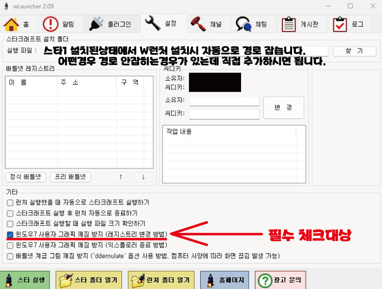 W런처 실행후 설정 가서 아래 이미지 체크되어있는지 확인하시면 됩니다.