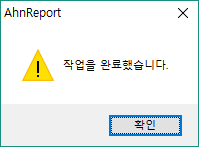 10) "작업을 완료했습니다"라고 메시지가 출력되면 확인을 누르고 안리포트 창을 닫습니다.