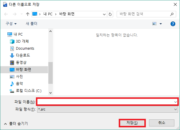8) [다른 이름으로 저장] 창에서 파일을 바탕화면에 임의로 지정한 후 [확인]을 클릭합니다. (파일 이름은 임의로 기재해 주십시오.)