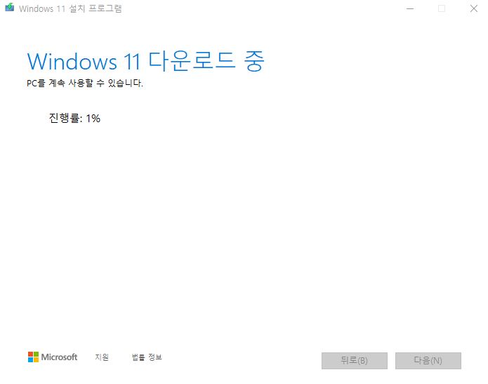 7.Windows 11 다운중입니다 기다려주시기 바랍니다.