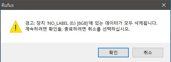 OK 누르면 위 경고글 나오는데 해당 USB에 중요한 데이터등 자료있으면 취소 눌려서 따로 백업하시고 중요한것없거나 포맷해도 상관없다면 확인 누르시면 됩니다.