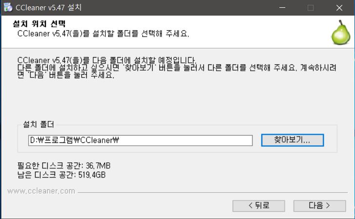 참고 지정하기전 먼저 CCleaner 폴더를 미리 만들시기 바랍니다.