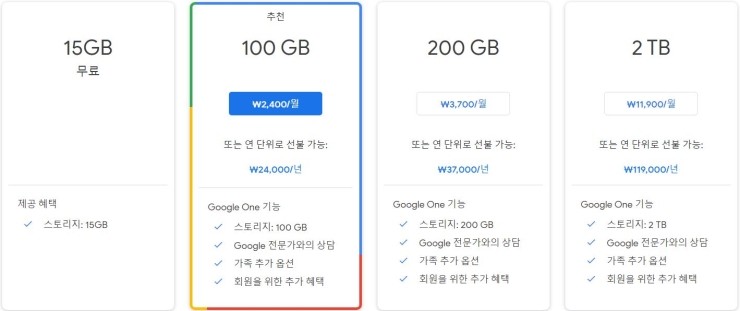(2~20GB)무료용량 미포함+100GB(유료용량)=100GB(총용량)