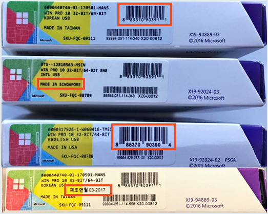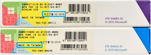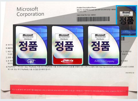 정품 패키지 또한, 위조 품의 경우 마감이 좋지 않으며, 윈도우 로고 또한 마감이 불량합니다.