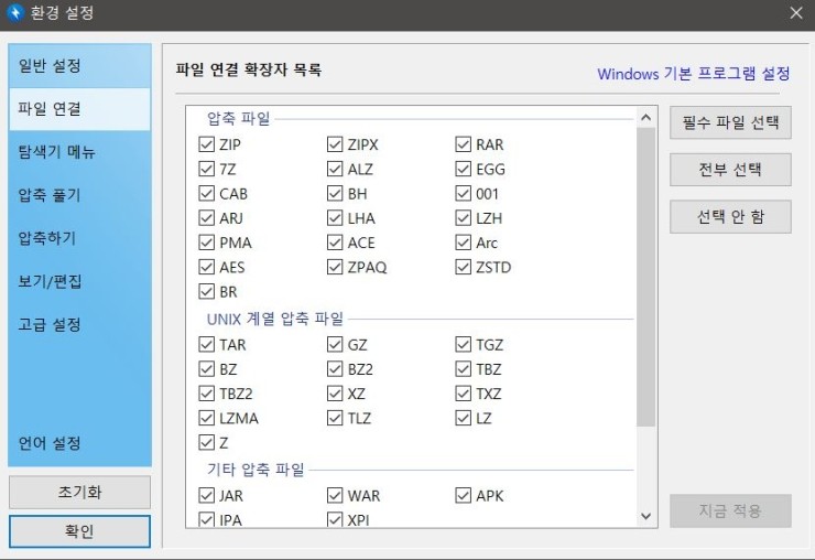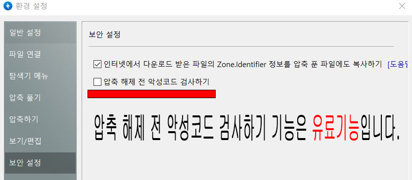 위 기본값이며 유료 제품 사용시 압축 해제 전 악성코드 검사하기 기능 이용가능합니다.