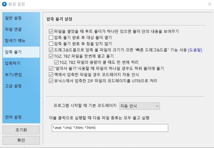 압축된 해외 파일 다운받는분은 자동 인식 설정하되 압축파일실행후 목록쪽 글꼴이 깨진다면