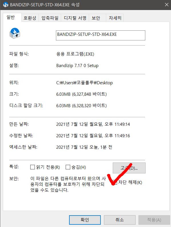 BANDIZIP-SETUP-STD-X64.EXE 으로 적혀있습니다.