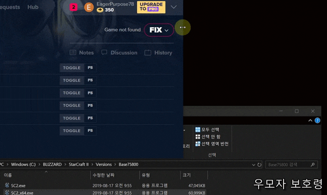 C:\블리자드\StarCraft II\Versions\Base75800 작동안됨