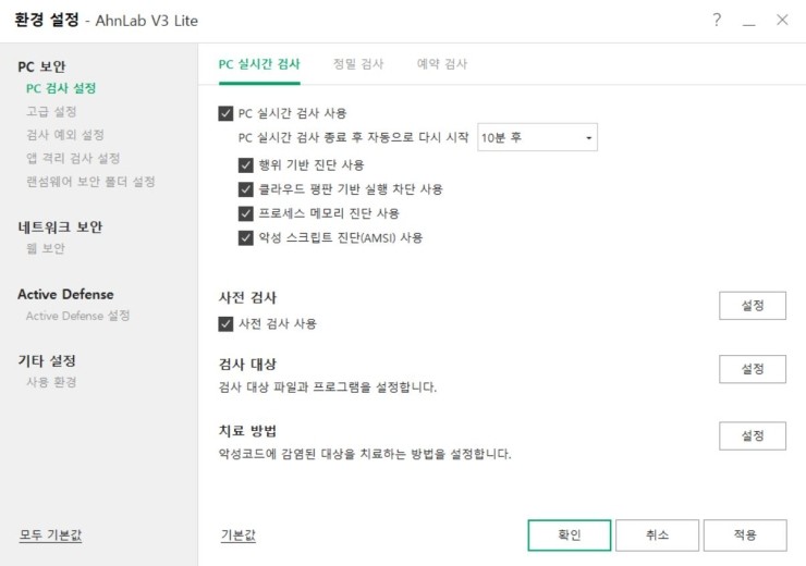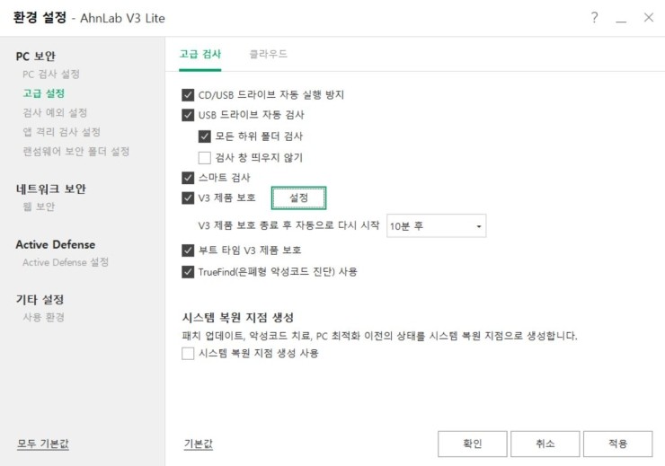 V3 365 권장 설정 보시는거라면 여기 에 방문하시기 바랍니다.
