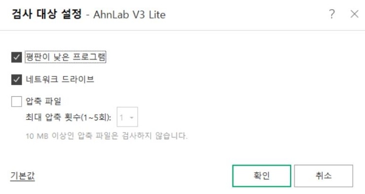 평판이 낮은 프로그램와 네트워크 드라이브 체크후 확인 누릅니다.