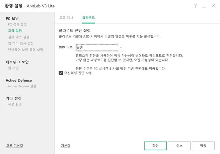 진단 수준은 높음으로 설정하시기 바랍니다.
