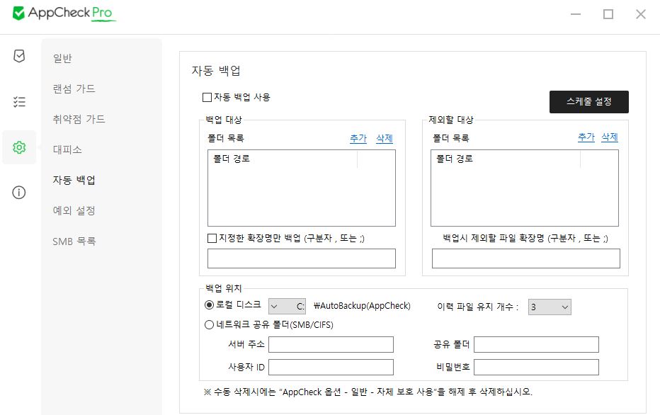물론 설정은 본인이 맞게 설정하시면됩니다. 자동백업기능이 필요없다면 체크 해제하시면 됩니다.