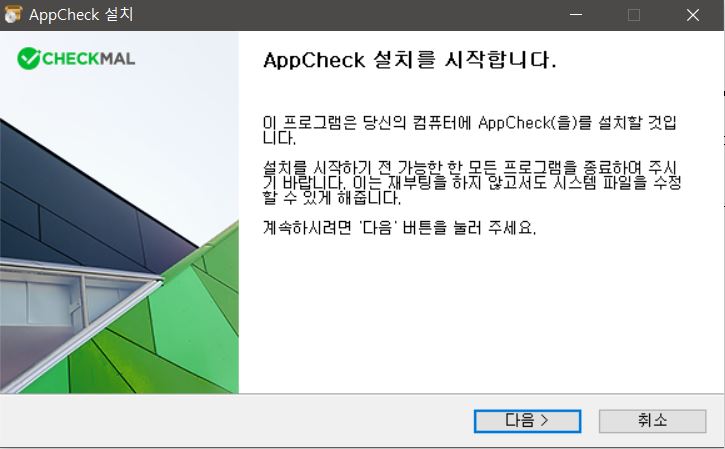 2. AppCheckSetup.exe 파일 실행후 다음 클릭
