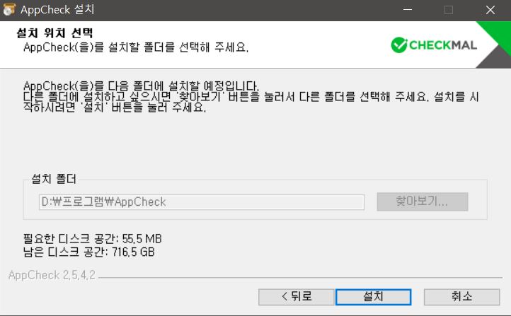 4.설치할 경로에 설치를 하는데 기존 설치된경우 변경불가합니다. 경로 변경원한다면 앱체크 삭제후 새로 설치해야합니다