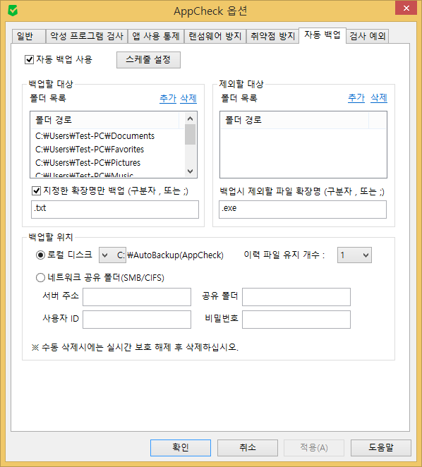 디스크 : 10GB(랜섬웨어 대피소와 자동 백업 기능 사용시 추가 용량 필요할수 있음)