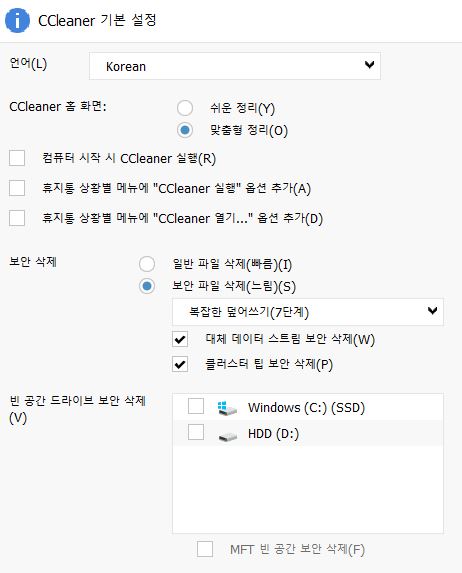CCleaner 설치+제품 권장 설정 안내