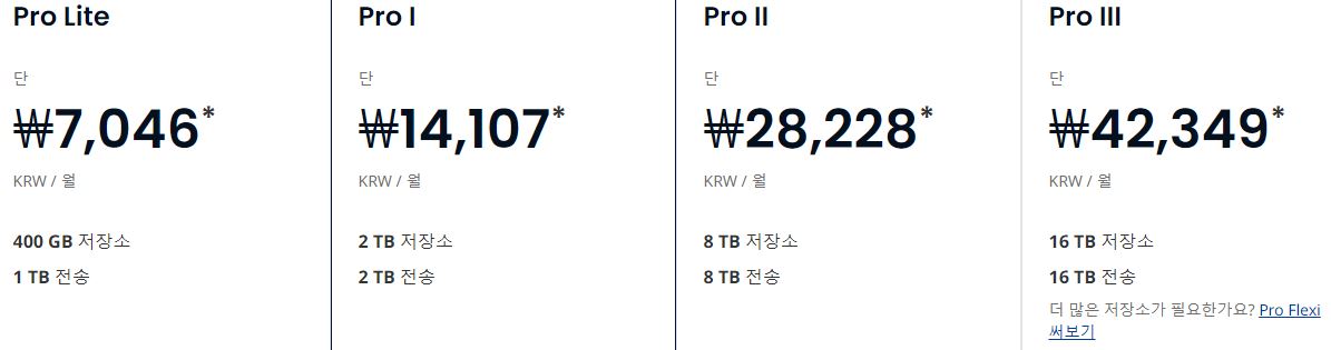 유료 용량 400GB~16TB까지