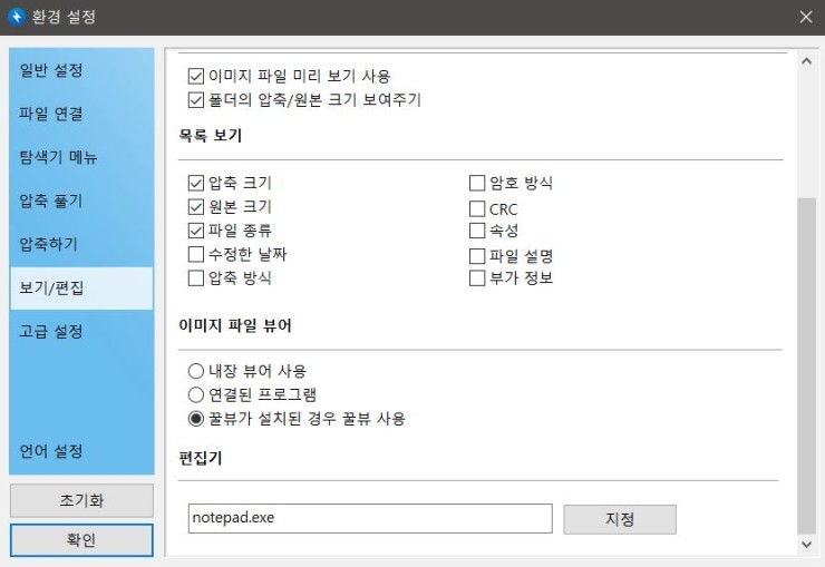 이미지 파일 뷰어쪽 꿀뷰가 설치된 경우 꿀뷰 사용체크하면