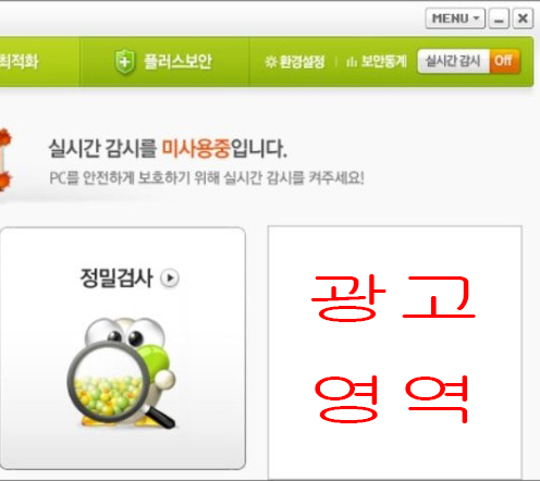 1. 백신 메인화면 오른쪽 광고