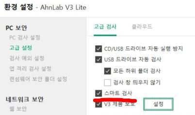 *위치 : 환경설정-PC 보안-고급 설정-고급 검사-스마트 검사