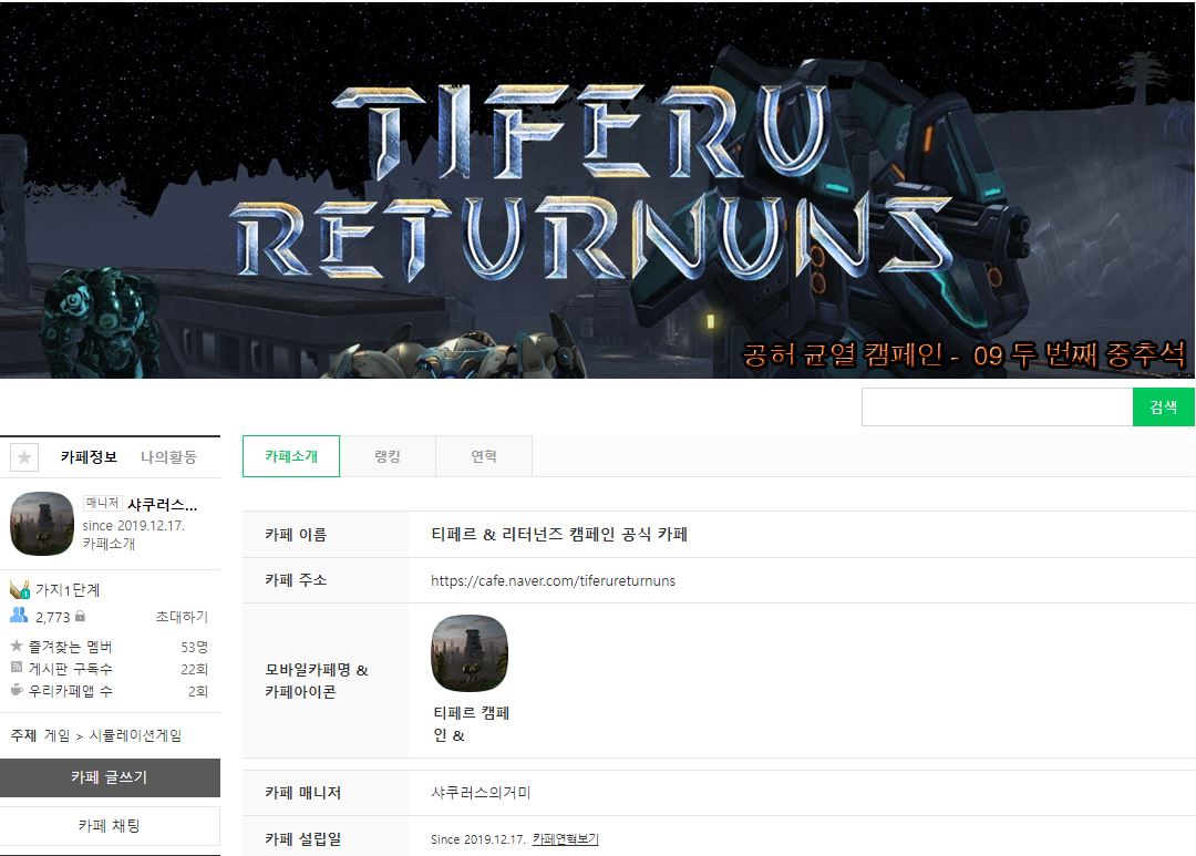 티페르 & 리터넌즈 캠페인 공식 카페